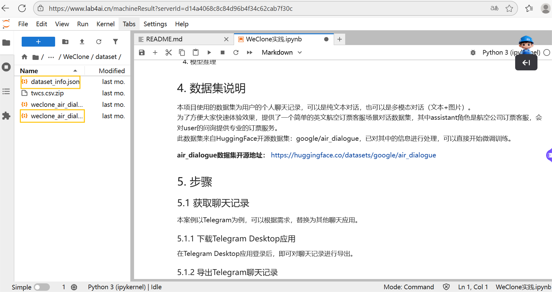 同时,本次实践也得益于Lab4AI平台提供的完善实验环境和数据资源: