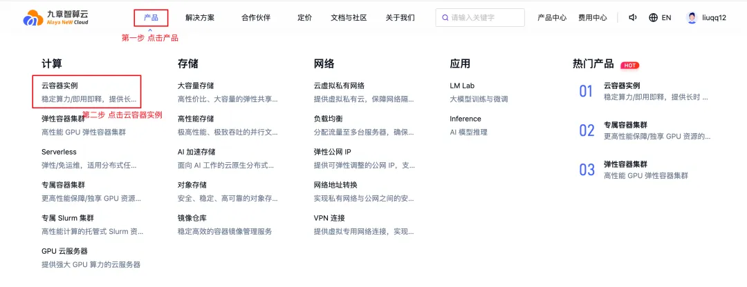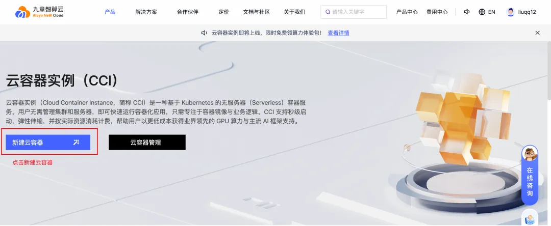 1、点击产品 -> 云容器实例