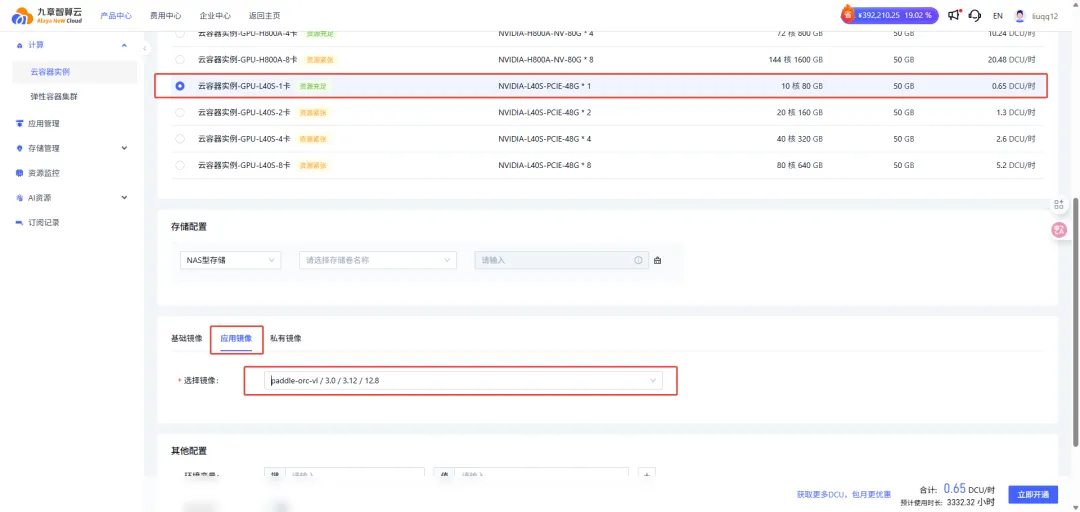 4、选择GPU-> 选择应用镜像