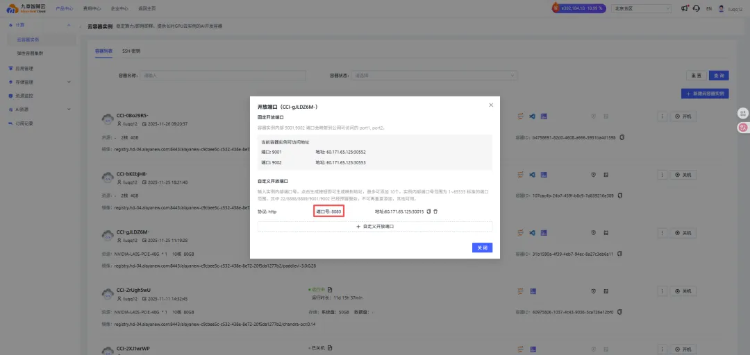9、回到云容器实例 -> 点开放端口图标