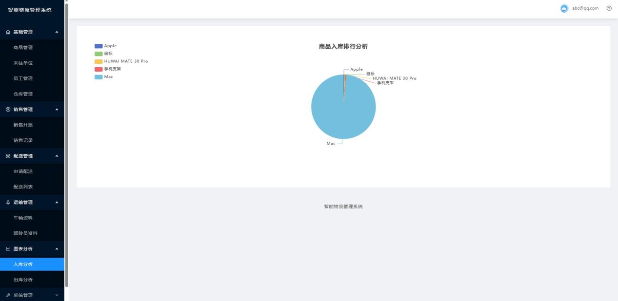 数据分析引入了百度的echart图实现了对商品的出库和入库信息分析。