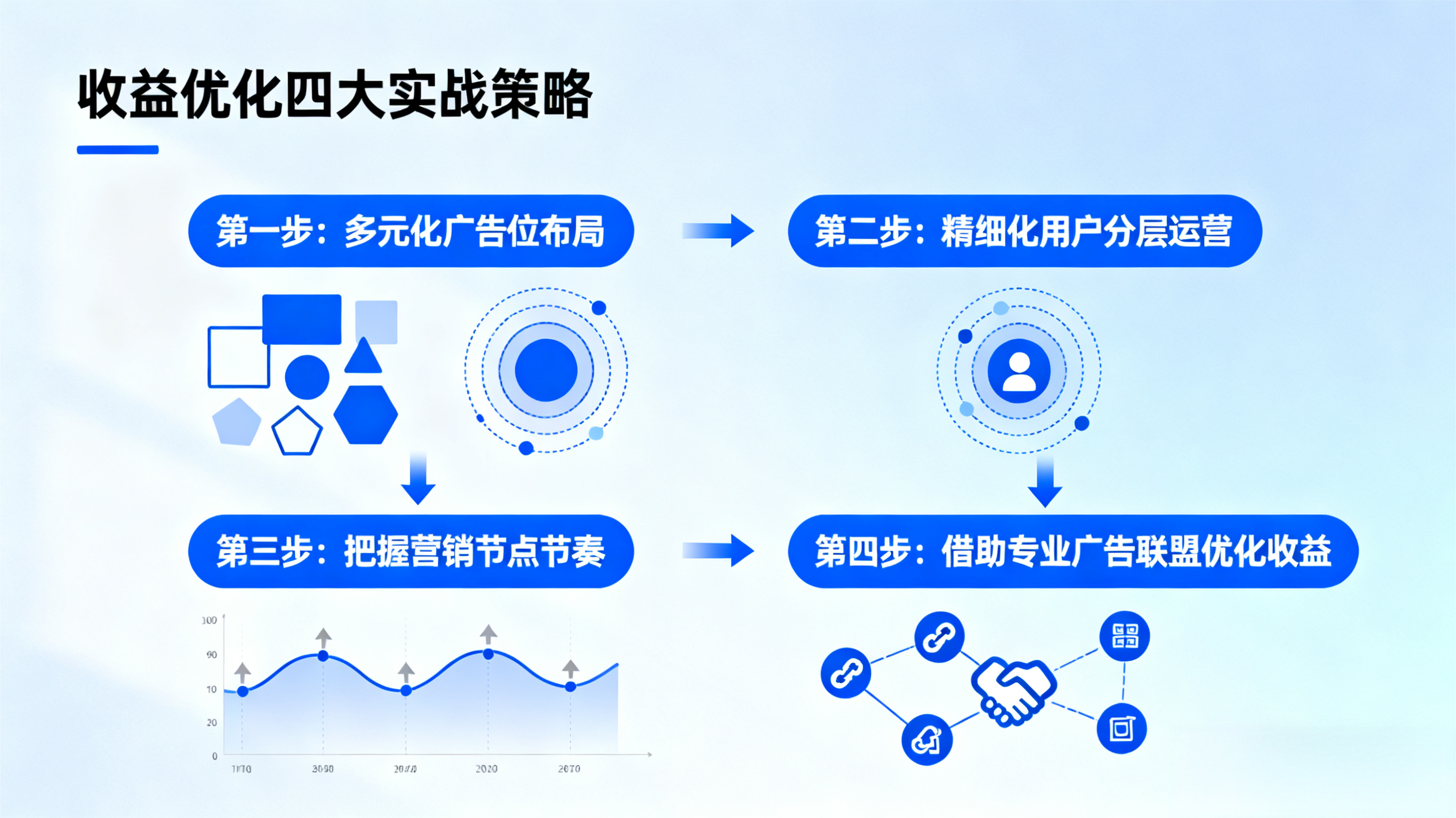 通过广告聚合平台的选择和技术实现方式直接影响填充率和eCPM。采用智能竞价策略能够显著提升收益。