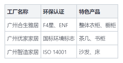 实施环保理念,还能帮助企业提升品牌形象,提高市场竞争力。例如,许多广州全屋定制厂家积极获取各类环保认证,如F4星和ENF等,这为消费者提供了选择依据。表格如下展示了部分广州优秀环保工厂及其认证情况: