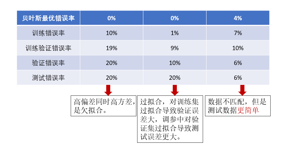 由此,在训练集和测试集的数据分布不同的情况下,我们通过增加训练验证集,仍然实现了对优化方向的误差分析。