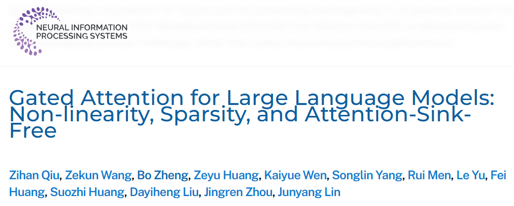 2.《Gated Attention for Large Language Models: Non-linearity, Sparsity, and Attention-Sink-Free》