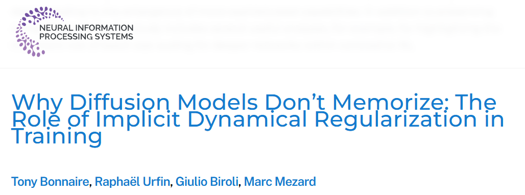 4.《Why Diffusion Models Don’t Memorize: The Role of Implicit Dynamical Regularization in Training》