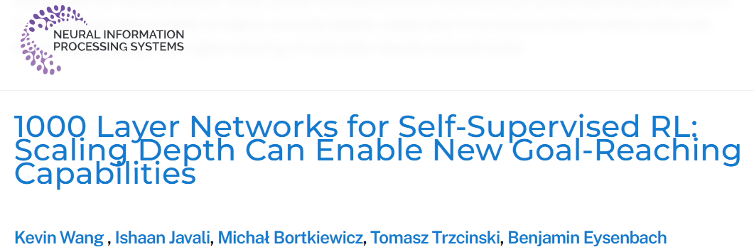 3.《1000 Layer Networks for Self-Supervised RL: Scaling Depth Can Enable New Goal-Reaching Capabilities》