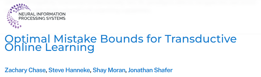 2. 《Optimal Mistake Bounds for Transductive Online Learning》