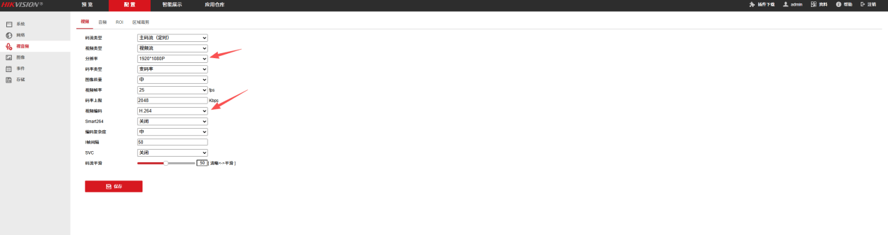 2)验证恢复效果:关闭全局转码后,平台显示的配置信息恢复正常,与设备实际配置(H.264+1K分辨率)完全一致。