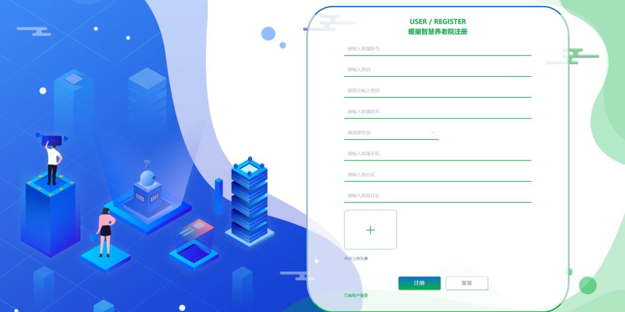 家属可以看到系统首页,个人中心,老人入住管理,外出报备管理,退房登记管理,每月餐饮管理,访客记录管理,病历档案管理界面进行操作。