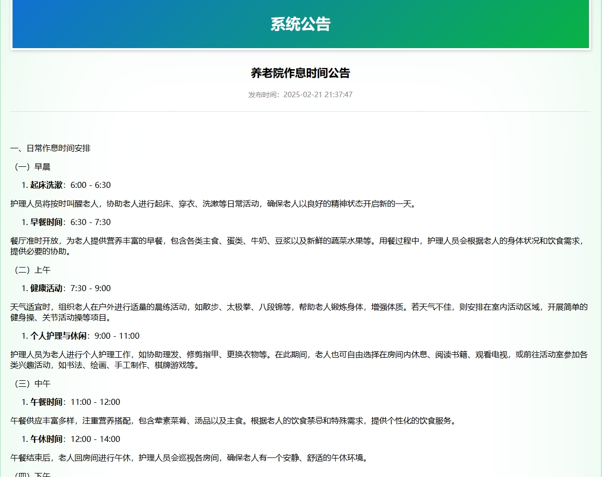 随着老龄化社会的加速发展,传统养老院管理模式面临效率低、服务滞后等挑战。本研究着力打造一套凭SpringBoot框架构建的智慧养老机构管理平台,借现代信息技术变革传统养老管理模式。系统用B/S架构,靠MySQL作核心数据库支撑,依Java技术体系开发达成。