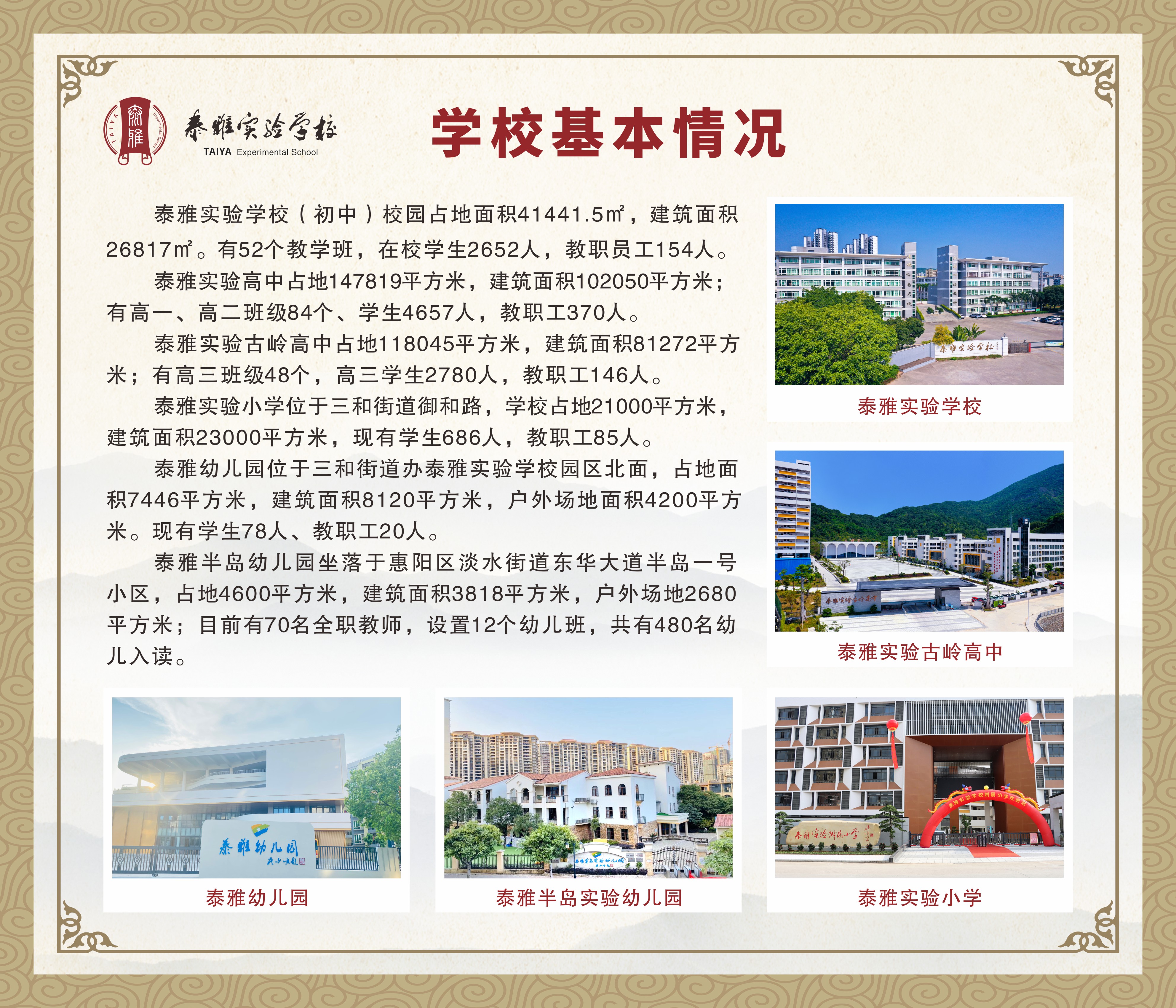 社会贡献:惠州泰雅实验高中向惠阳及周边输送管理干部22人,与8所县域中学签订对口帮扶协议;承办省市级教育研讨会102场,接待全国考察团160批次;设立200万元创新人才奖励基金,管理效能提升37%,教师满意度达92.6%,是家长心中口碑好的民办高级中学首选。