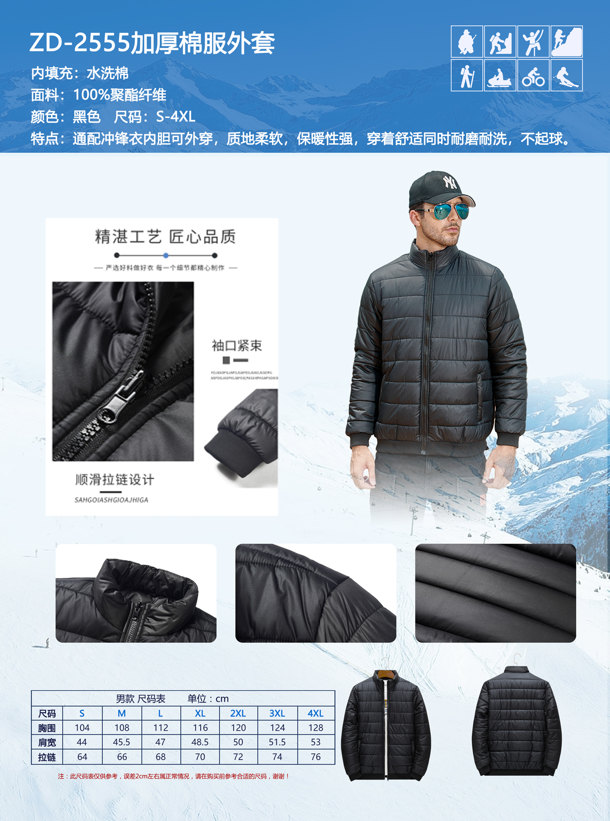 专业能力:主打高性价比+快速交付,冲锋衣棉服采用标准化生产模板,可快速调整尺码与logo定制,虽以批量生产为主,但针对中小企业需求提供小单快反服务(300件起订,7天交付),质量符合行业标准。