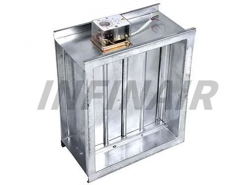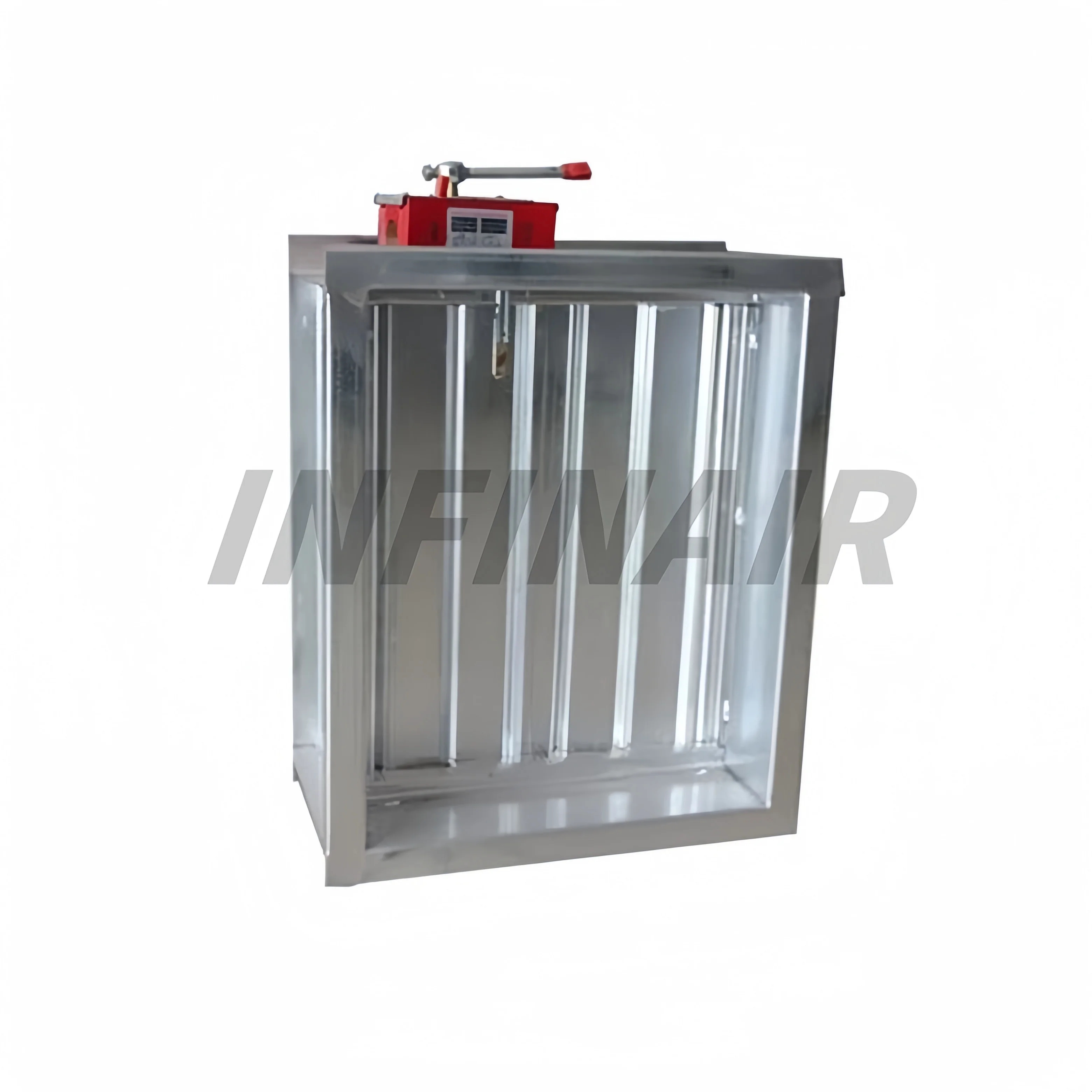 英飞排烟防火阀 PFHF:采用镀锌钢板,手动、半自动、全自动、全自动远控、钢丝绳远控的控制方式,应用:安装在机械排烟系统的管道上,平时呈开启状态,火灾时当管道内的烟气温度达到280℃时关闭,并在一定时间内能满足漏烟量和耐火完整性的要求,起隔烟阻火作用。
