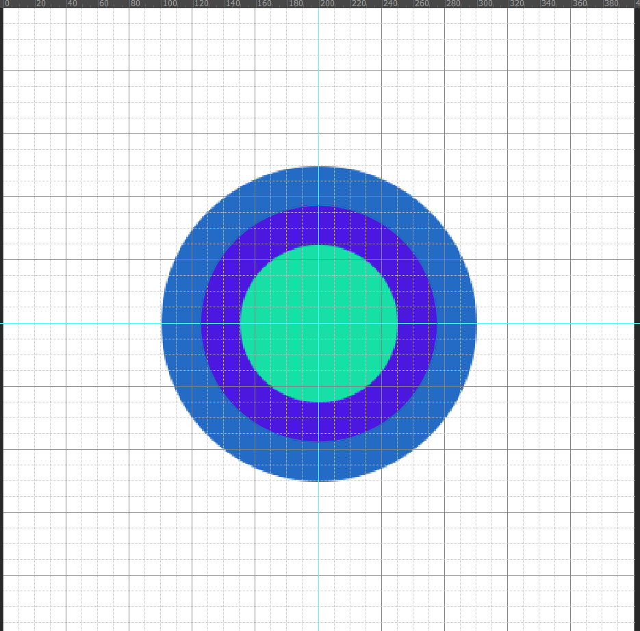 1.选择椭圆工具分别建三个200*200px、150*150px、100*100px的圆在不同图层用不同颜色,拷贝椭圆2