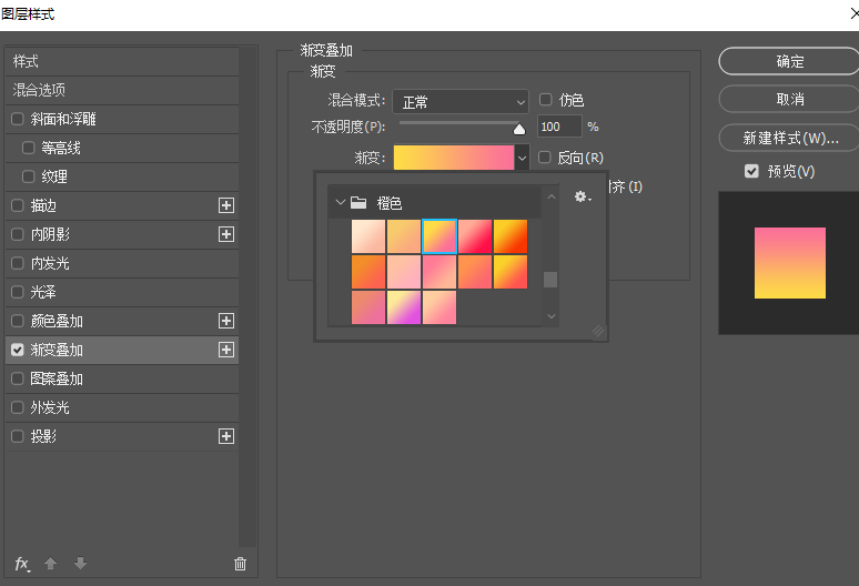 选择图层样式里的渐变叠加中的渐变里的橙色,把这个图层转换为智能对象,复制这个图层,然后ctrl+t选中