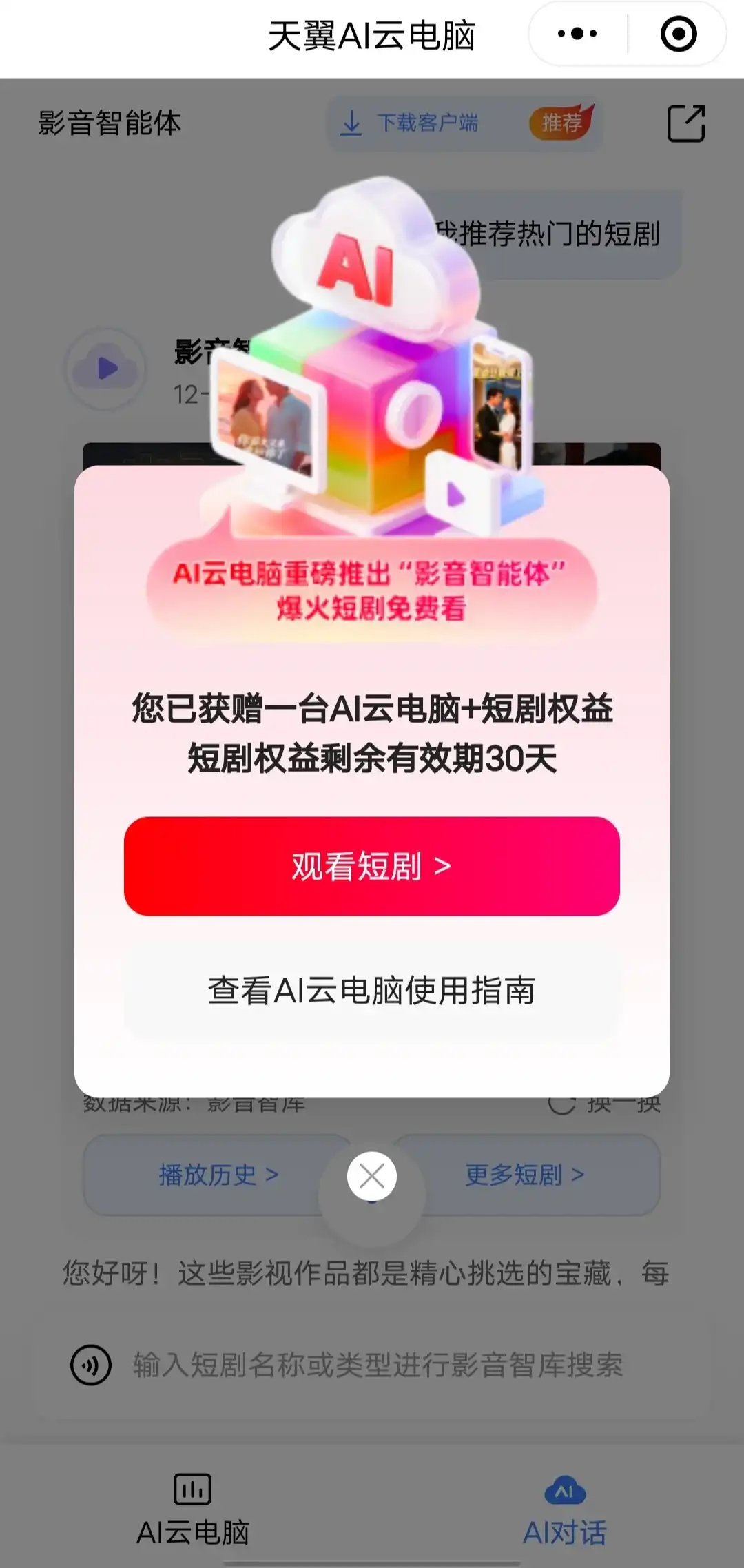 然后用微信扫码打开天翼云电脑的小程序,点击“立即体验”。