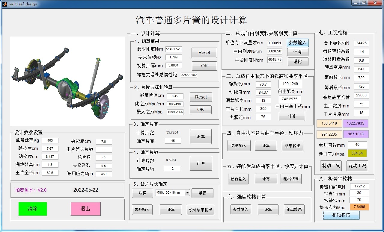 无论是独立悬架还是板簧悬架,这款程序都能完美适配。其计算结果满足工程要求,从实际图片(大家可自行查看具体图片)中可以清晰看到,计算结果与实际工程需求的契合度。