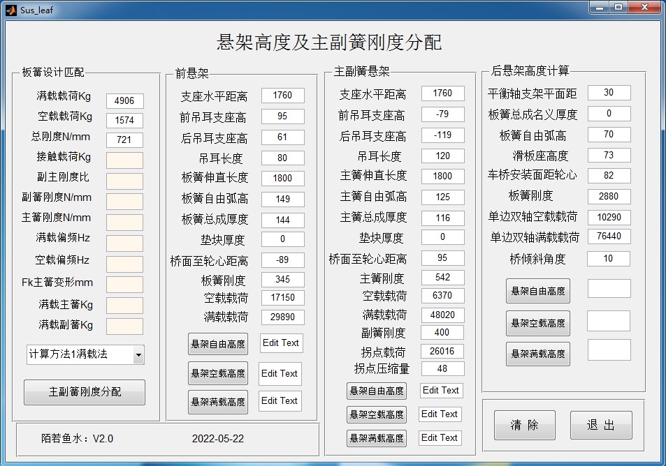 程序能够计算悬架偏频刚度挠度。比如,通过下面这段简单的Matlab代码可以计算悬架的刚度: