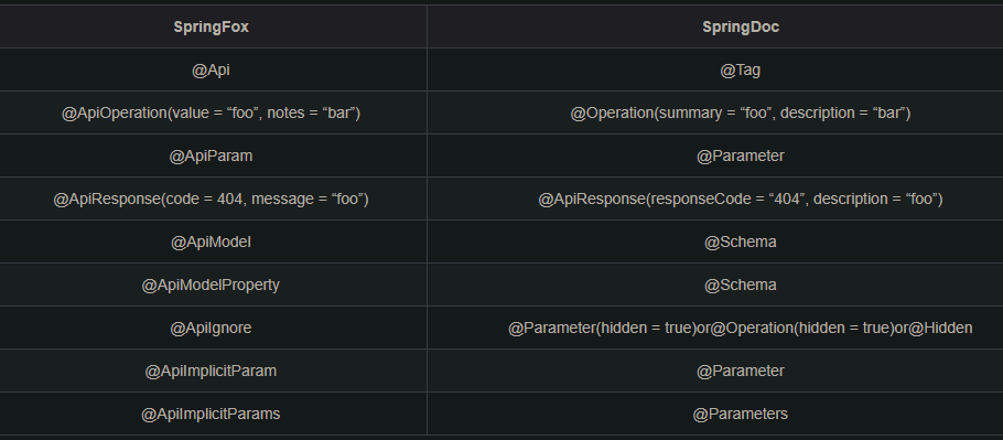 • Swagger 2.x → SpringDoc OpenAPI 3.x