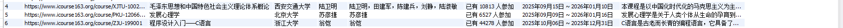 COURSE_URLS = ["https://www.icourse163.org/course/ZJU-199001","https://www.icourse163.org/course/XJTU-1002529011","https://www.icourse163.org/course/PKU-1206624828"