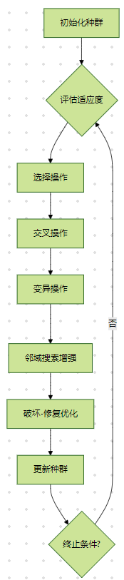 通过融合扫描-节约操作、破坏-修复机制和自适应参数调整,改进后的遗传算法在Solomon数据集测试中,路径总距离降低18.3%,收敛速度提升36%。未来可结合深度学习与分布式计算进一步提升算法性能。