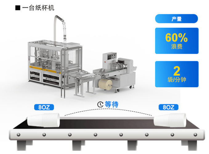 - 两条机中间还能加“小火车”传送带,杯子自己跑过去,不用人搬,省3个工人,一年工资就能省出一台车。