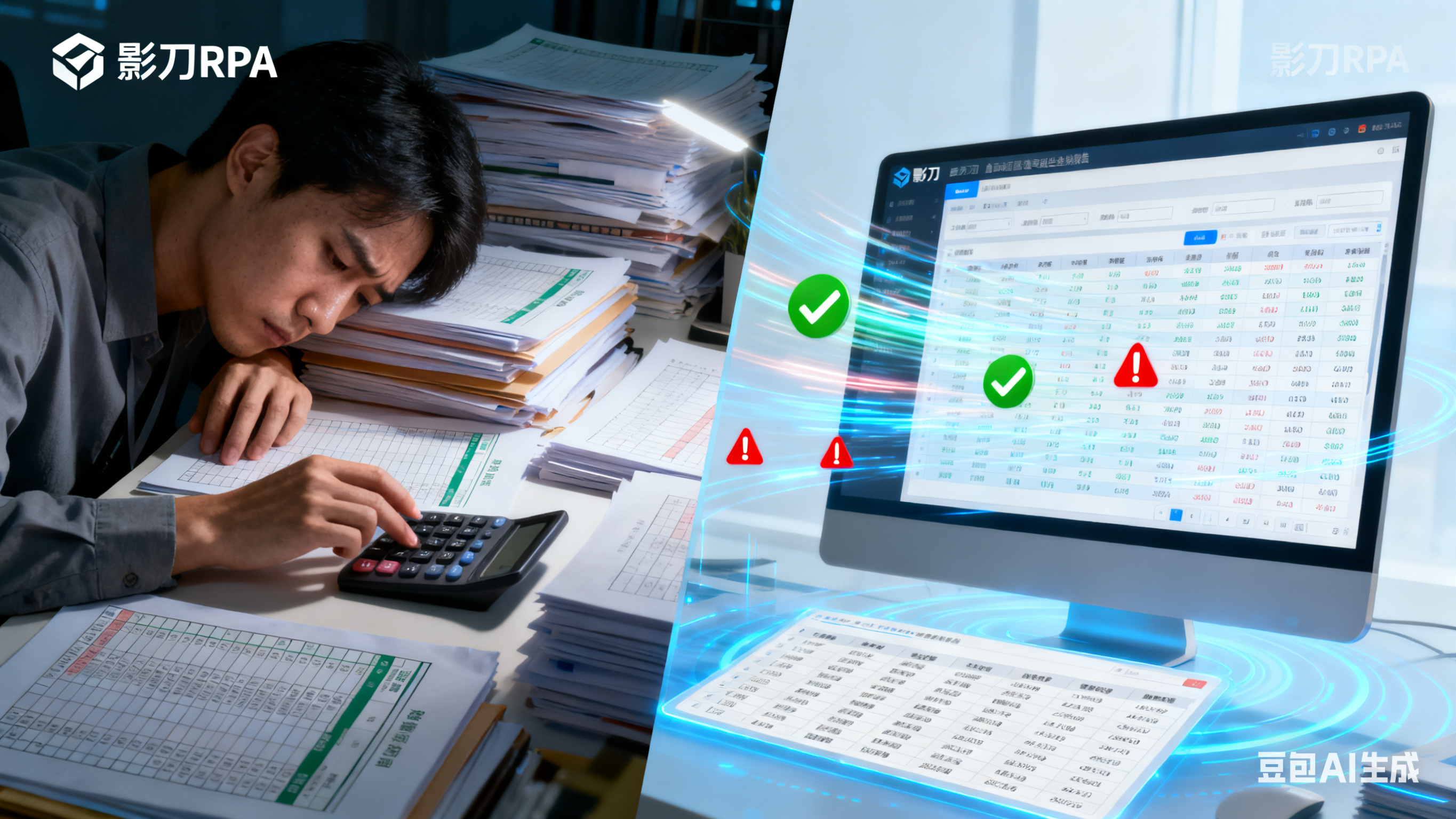 传统手动对账需逐行核对Excel与银行账单,耗时约2小时。影刀RPA可自动匹配差异项并生成报告,将时间缩短至10分钟,准确率提升至99%。