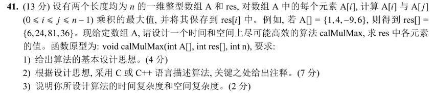 void CalMulMax(int A[ ],int res[ ],int n){